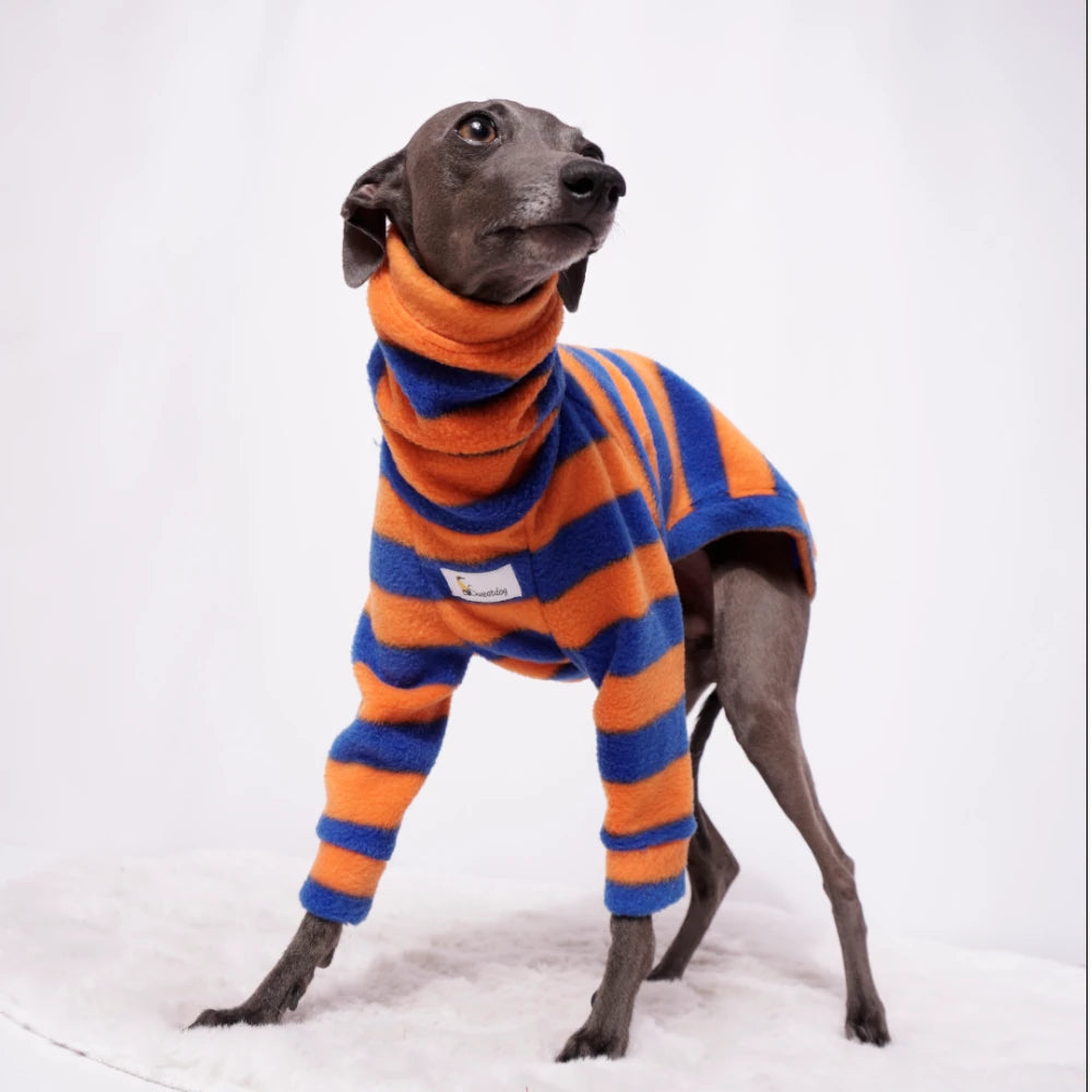 Italian Greyhounds sind wahre Schönheiten, aber ihre zarte Haut und das dünne Fell machen sie besonders kälteempfindlich. Unsere handgestrickten Wollpullover sind die ideale Lösung für diese eleganten Windhunde