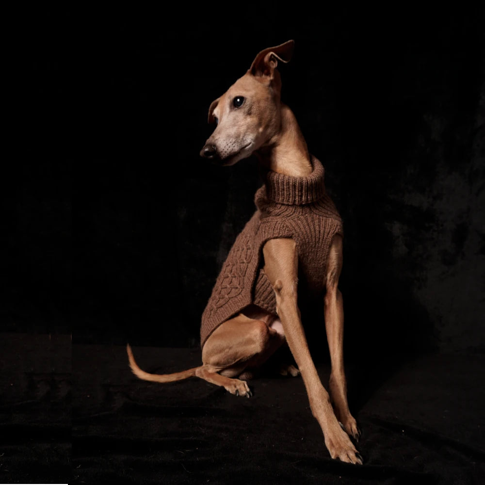 Italian Greyhounds sind wahre Schönheiten, aber ihre zarte Haut und das dünne Fell machen sie besonders kälteempfindlich. Unsere handgestrickten Wollpullover sind die ideale Lösung für diese eleganten Windhunde