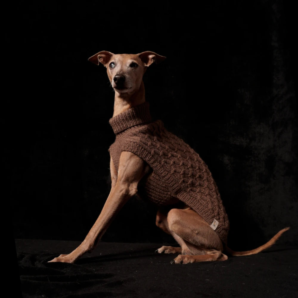 Der handgestrickte Hundepullover „Levin“ in Braun vereint luxuriösen Komfort mit eleganter Funktionalität, speziell für Italian Greyhounds. Aus 100 % reiner Merinowolle gefertigt, bietet er natürliche Wärme und reguliert die Temperatur sanft – ideal bei wechselnden Wetterbedingungen. Das dezente Smokmuster in Braun setzt einen stilvollen Akzent bei jedem Spaziergang. Das beinfreie Design gewährleistet optimale Bewegungsfreiheit, während die feine Merinowolle empfindliche Haut schützt und ein angenehmes Tragegefühl garantiert. Ein hochwertiger Pullover, der Komfort und Stil verbindet.