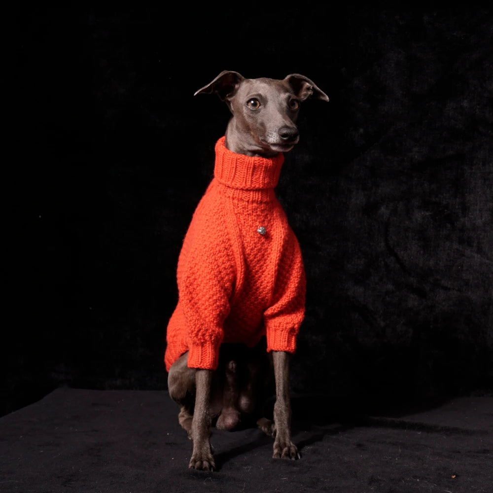 Italian Greyhounds sind wahre Schönheiten, aber ihre zarte Haut und das dünne Fell machen sie besonders kälteempfindlich. Unsere handgestrickten Wollpullover sind die ideale Lösung für diese eleganten Windhunde