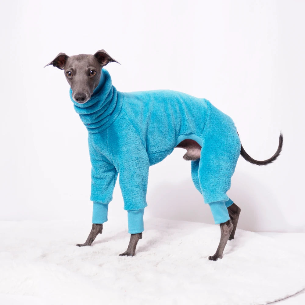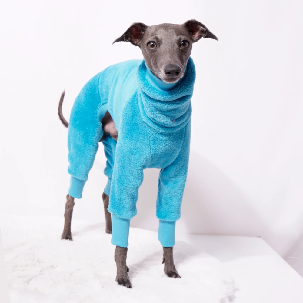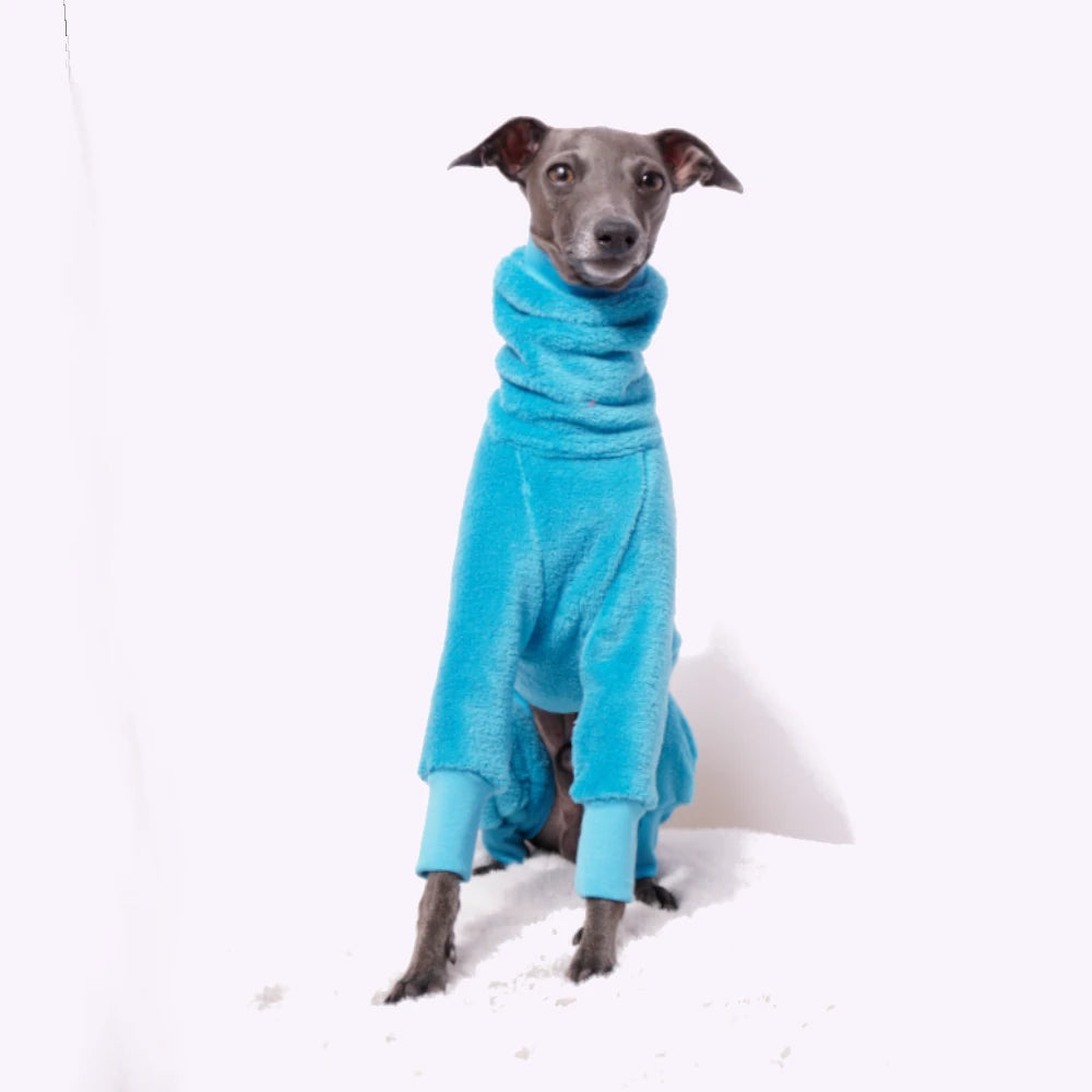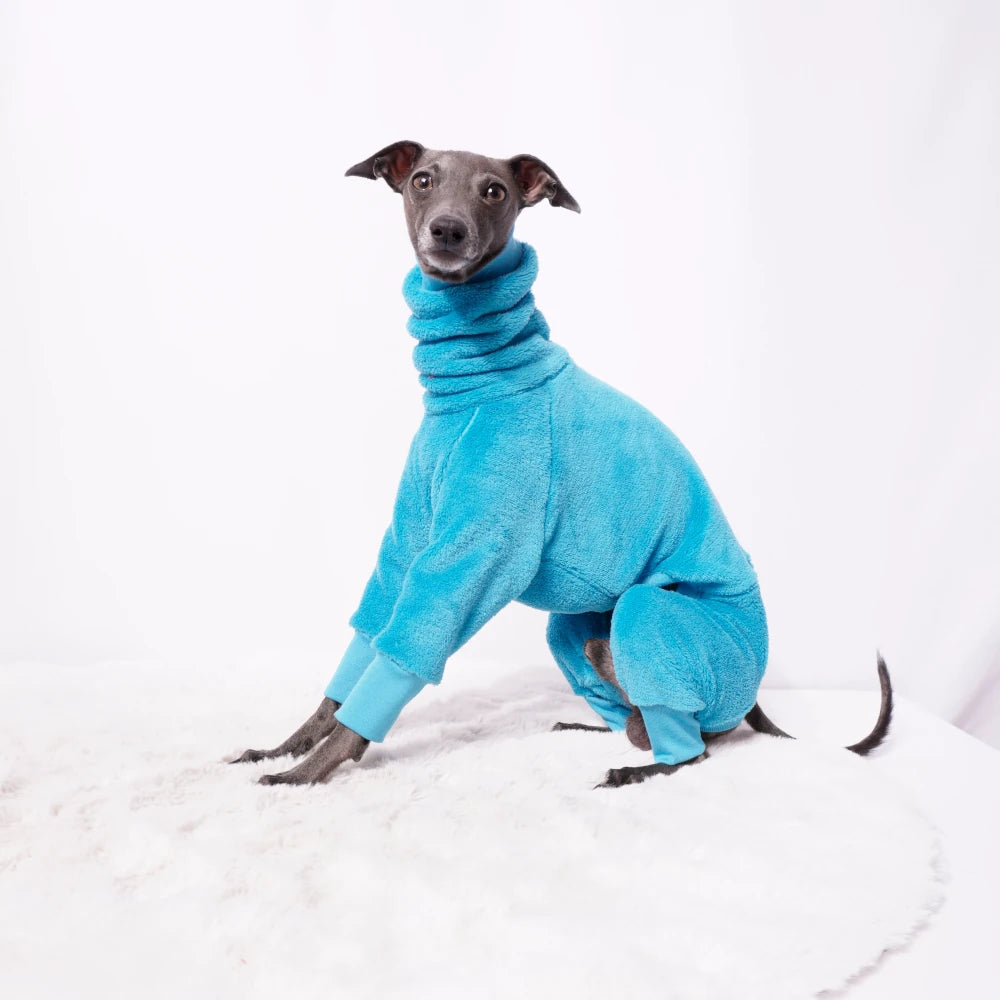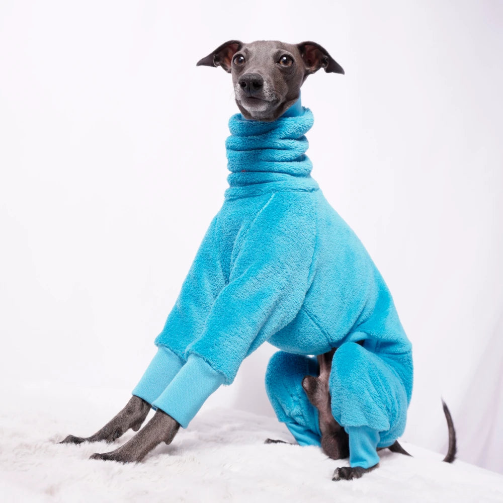 Der Plüsch-Overall „KATLEEN“ wurde speziell für italienische Windspiele entwickelt und bietet durch hochwertiges, wärmendes Plüschfleece innen und außen optimalen Schutz bei Kälte. Ein hoher Kragen bewahrt den Hals vor Zugluft, während elastische Bündchen an Kragen und Beinen für eine passgenaue und flexible Anpassung sorgen. Die durchdachte Schnittführung mit formgebenden Teilungsnähten garantiert idealen Tragekomfort und eine attraktive Optik. „KATLEEN“ lässt sich hervorragend mit Softshell-Mänteln oder Westen kombinieren und schützt zuverlässig bei Aktivitäten drinnen und draußen.