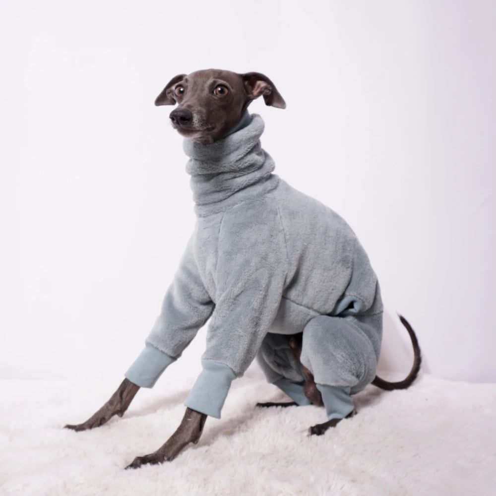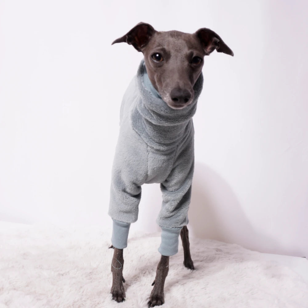 Der Plüsch-Overall „KATLEEN“ wurde speziell für italienische Windspiele entwickelt und bietet durch hochwertiges, wärmendes Plüschfleece innen und außen optimalen Schutz bei Kälte. Ein hoher Kragen bewahrt den Hals vor Zugluft, während elastische Bündchen an Kragen und Beinen für eine passgenaue und flexible Anpassung sorgen. Die durchdachte Schnittführung mit formgebenden Teilungsnähten garantiert idealen Tragekomfort und eine attraktive Optik. „KATLEEN“ lässt sich hervorragend mit Softshell-Mänteln oder Westen kombinieren und schützt zuverlässig bei Aktivitäten drinnen und draußen.